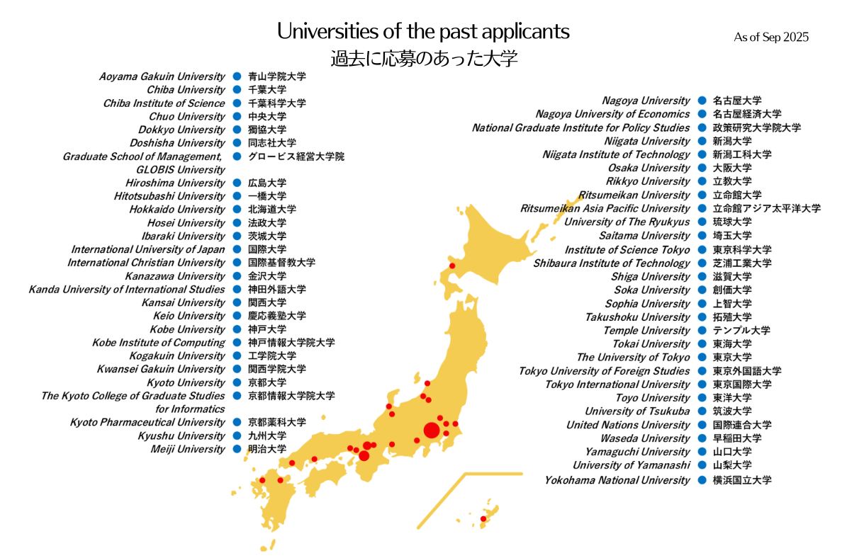 過去に応募いただいた国/地域・大学
